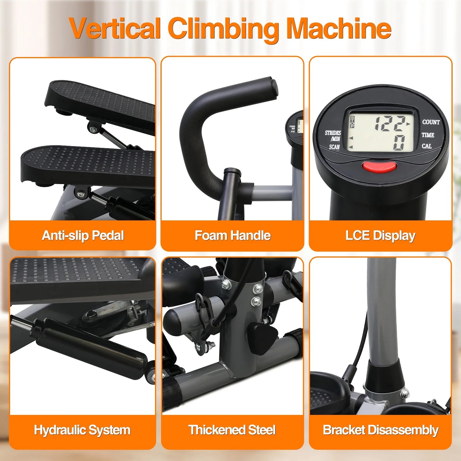 جهاز تمارين صعود الدرج مع أحزمة مقاومة ومقبض شاشة LCD يتحمل حتى 150 كجم