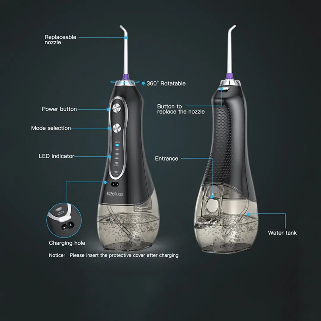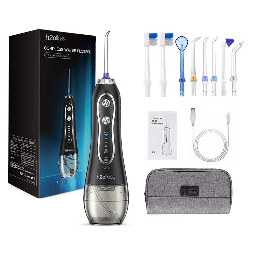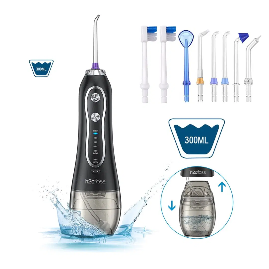 جهاز تنظيف الأسنان المائي H2ofloss HF-6 لاسلكي قابل لإعادة الشحن – سعة 300 مل | أسود