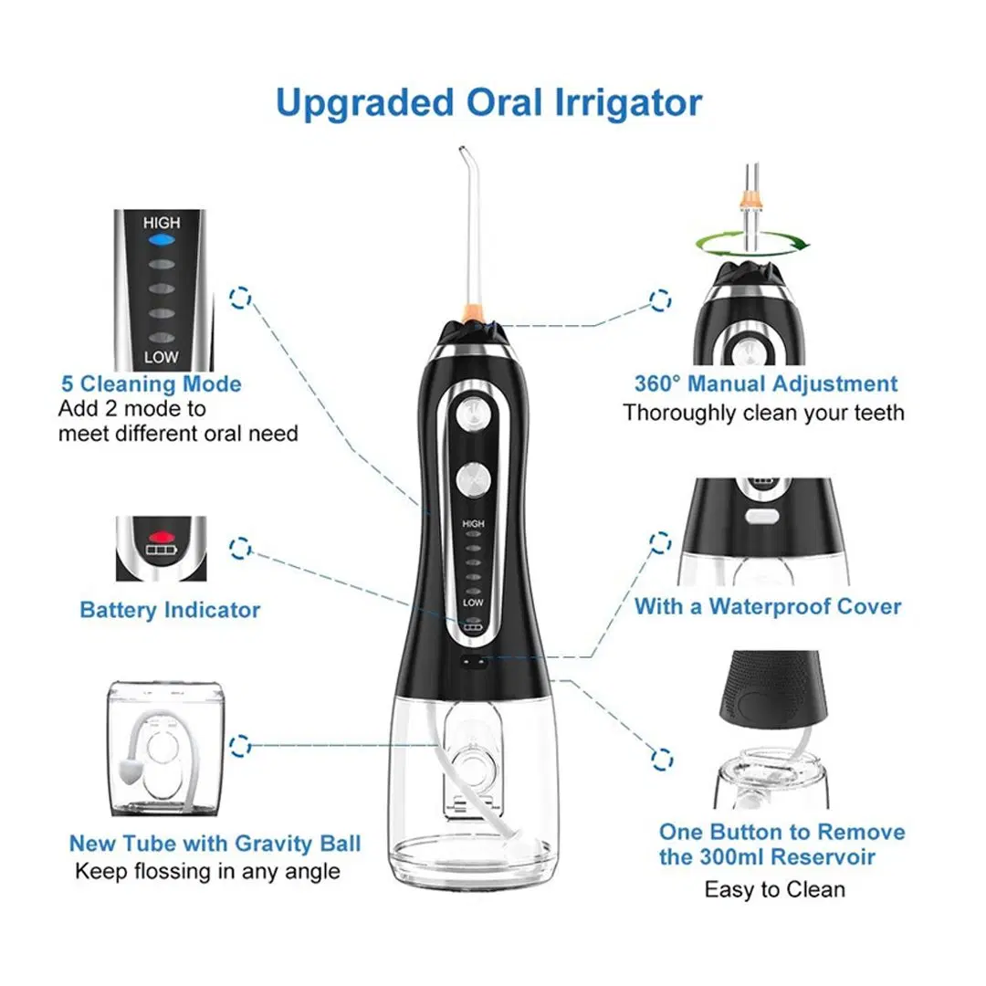 يتميز الجهاز بخمسة أوضاع مختلفة لضغط الماء، مما يتيح لك تخصيص تجربة التنظيف حسب احتياجاتك سواء للأسنان الحساسة أو التقويم أو التنظيف العميق. كما يضم فوهة دوارة 360 درجة لضمان وصول الماء إلى جميع الزوايا بسهولة.