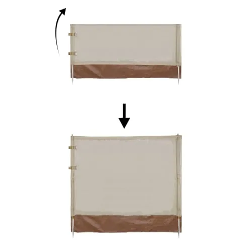 تم توزيع الأعمدة بمسافة 1.34 متر لضمان التوازن أثناء الاستخدام، ويأتي الرواق مع حقيبة تخزين مدمجة وجراب خاص للأسياخ، مما يسهل عليك النقل والترتيب. اللون الخاكي مناسب لأجواء البر ويعطي مظهر عملي ومتناسق.