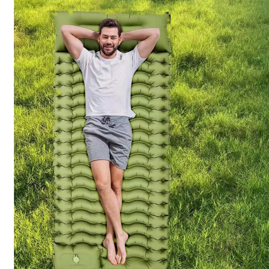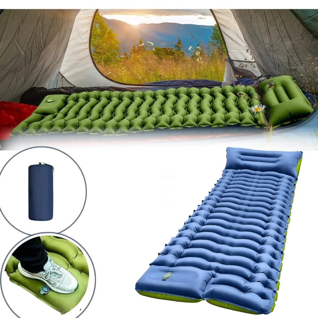 - نفخ سريع: مضخة قدم مدمجة تنفخ السرير خلال 30–60 ثانية فقط، دون الحاجة لمضخة إضافية.