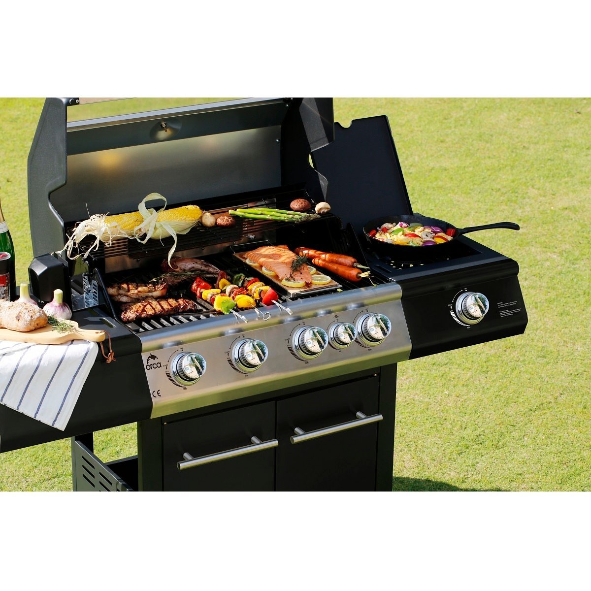شواية غاز أوركا 4 شعلات + شعلة بالأشعة تحت الحمراء + شعلة جانبية – مقاس 147×57×120 سم