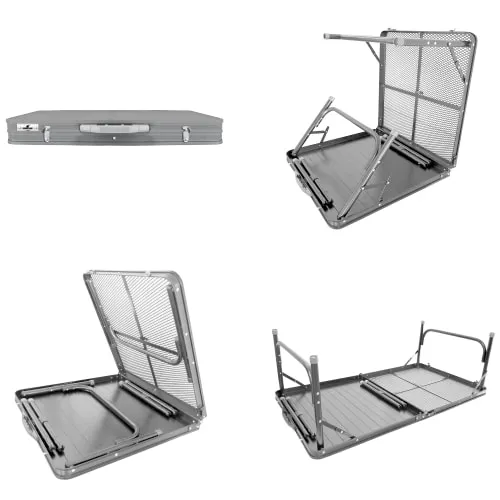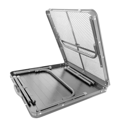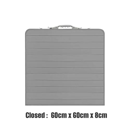 الطاولة مصنوعة من الألمنيوم الخفيف والمتين، ما يجعلها سهلة الحمل والتنقل مع الحفاظ على ثبات جيد أثناء الاستخدام. وزنها الخفيف 1.4 كجم فقط يجعلها مثالية للرحلات الطويلة والتنقل المستمر دون عناء.