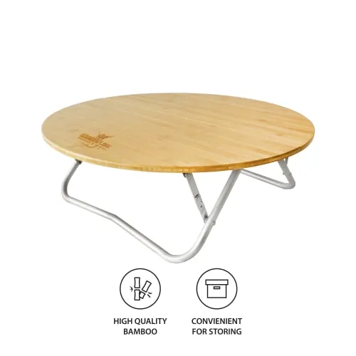 طاولة البامبو الدائرية تجمع بين الشكل الأنيق والعملية العالية، لتكون خيار مثالي للرحلات، التخييم، والجلسات الخارجية. يتميز سطح الطاولة بأنه مصنوع من خشب البامبو الطبيعي المعروف بمتانته ومظهره الجميل، مع قاعدة من الألمنيوم توفر ثباتًا ممتازًا وخفة في الوزن.