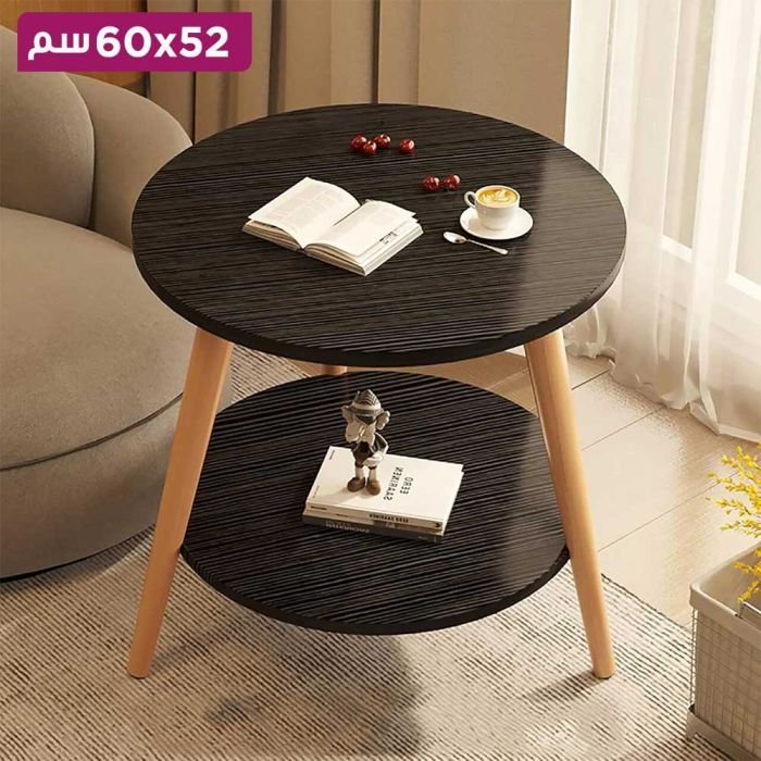 - 1 × طاولة قهوة مستديرة خشبية – طبقتين – أسود