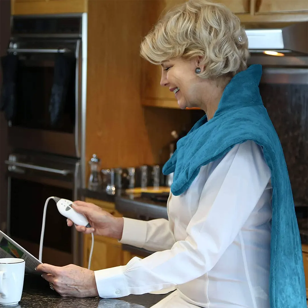 يجمع الغطاء بين حرارة لطيفة وتدليك اهتزازي مزدوج لتخفيف آلام العضلات والتشنجات في الرقبة، الأكتاف، الظهر وحتى أسفل الظهر.