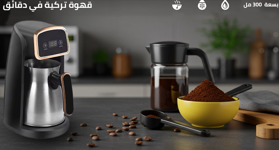 ماكينة قهوة تركية عصرية وعملية، تخلي قهوتك حاضرة بسرعة وتناسب كل الأوقات