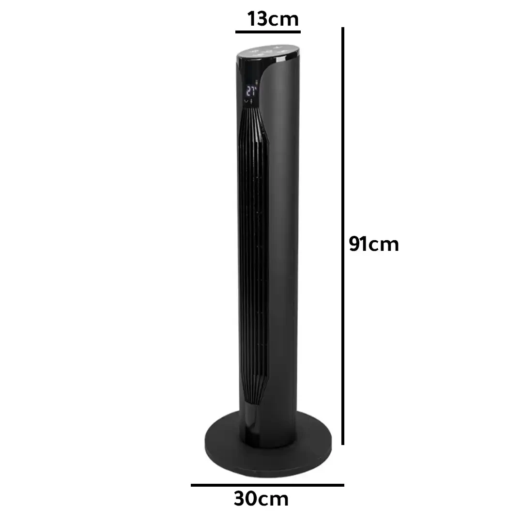 بفضل تصميمها الأنيق والعملي، يمكن وضعها في أي زاوية من المنزل أو المكتب دون أن تشغل مساحة كبيرة، ومع ارتفاع 91 سم تضمن توزيعاً واسعاً ومنتظماً للهواء.