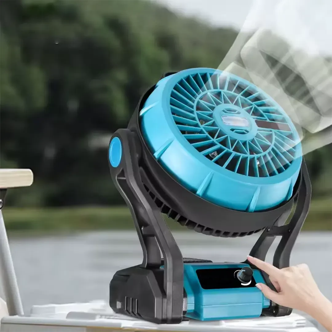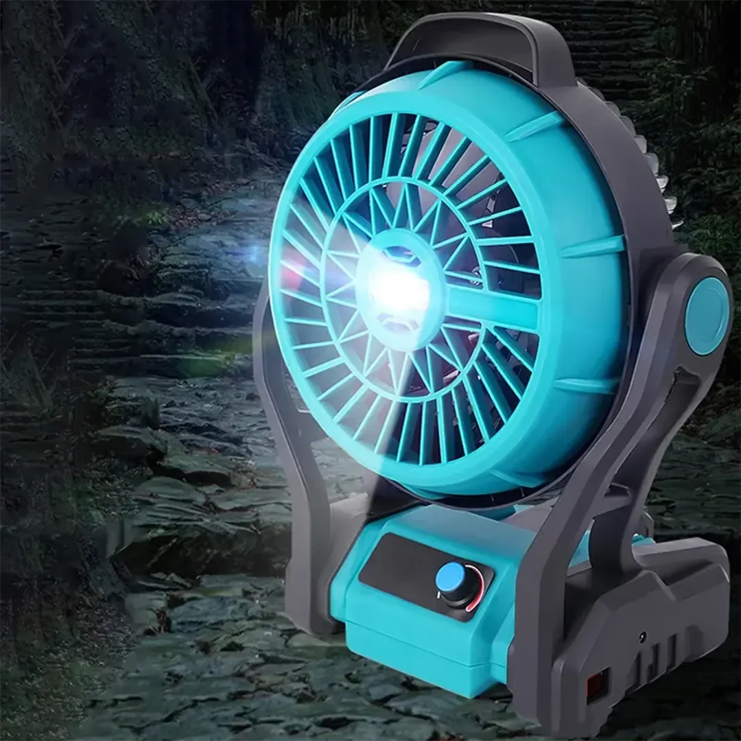 استمتع بالهواء المنعش والإضاءة العملية في أي مكان مع المروحة المحمولة القابلة للشحن مع LED.