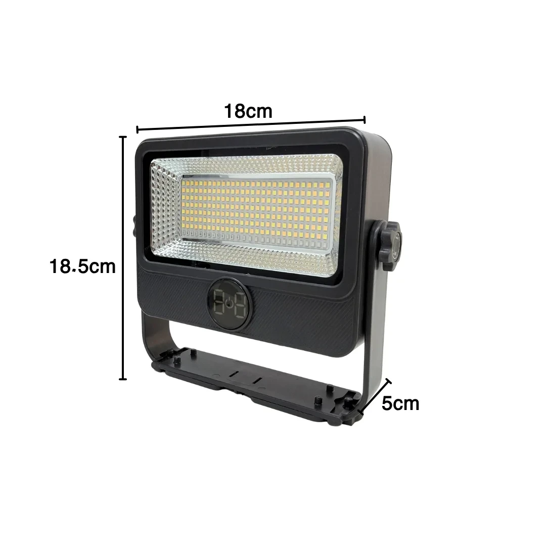 الشاشة الرقمية في المقدمة توضح مستوى الطاقة بدقة، والمصباح مقاوم للماء IP44، مما يجعله مناسب للاستخدام في الأماكن المفتوحة.