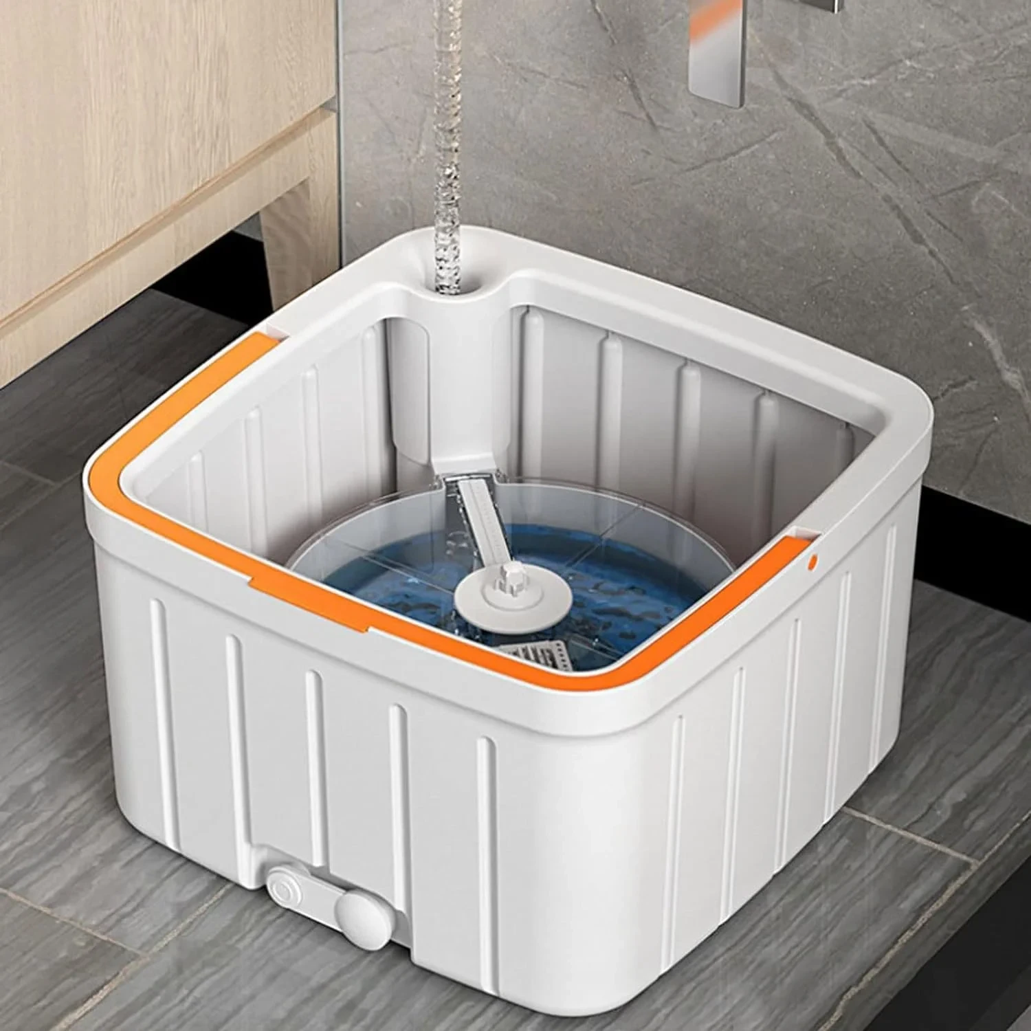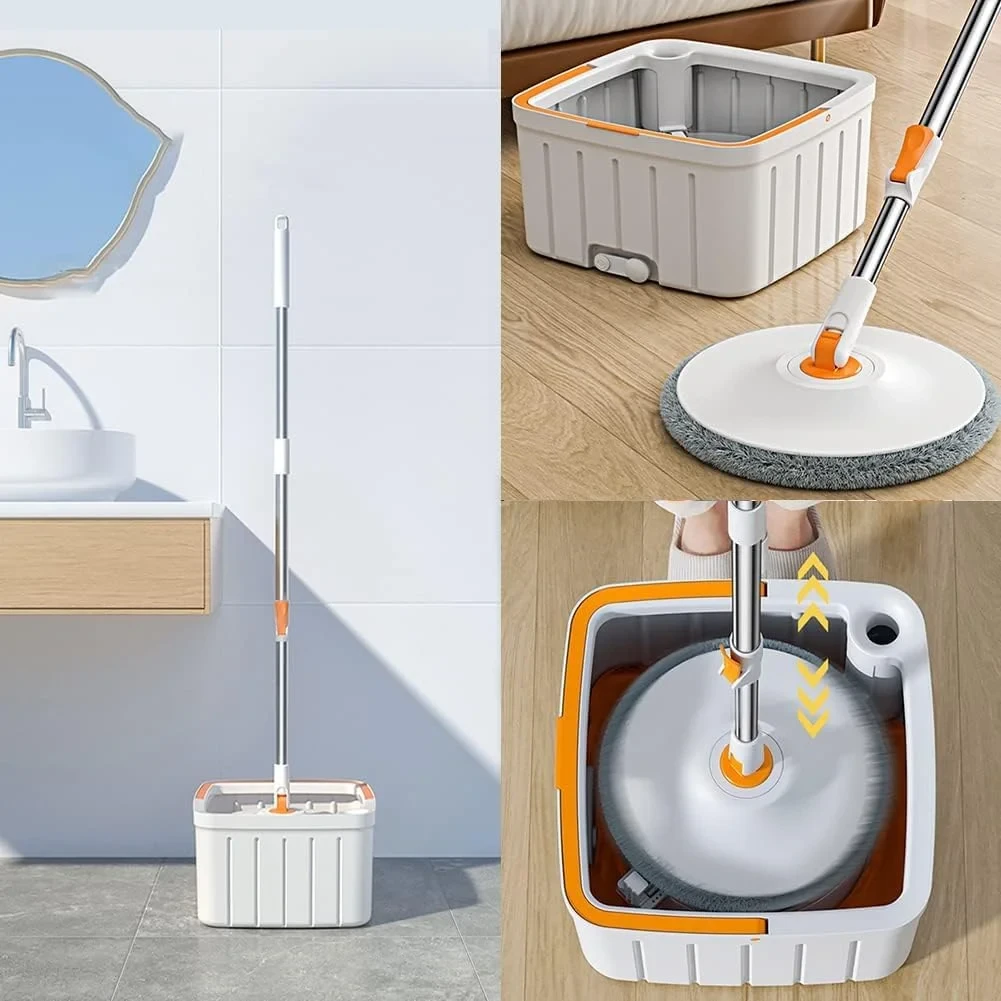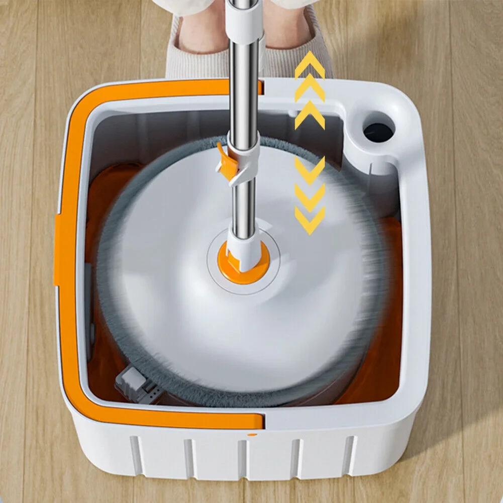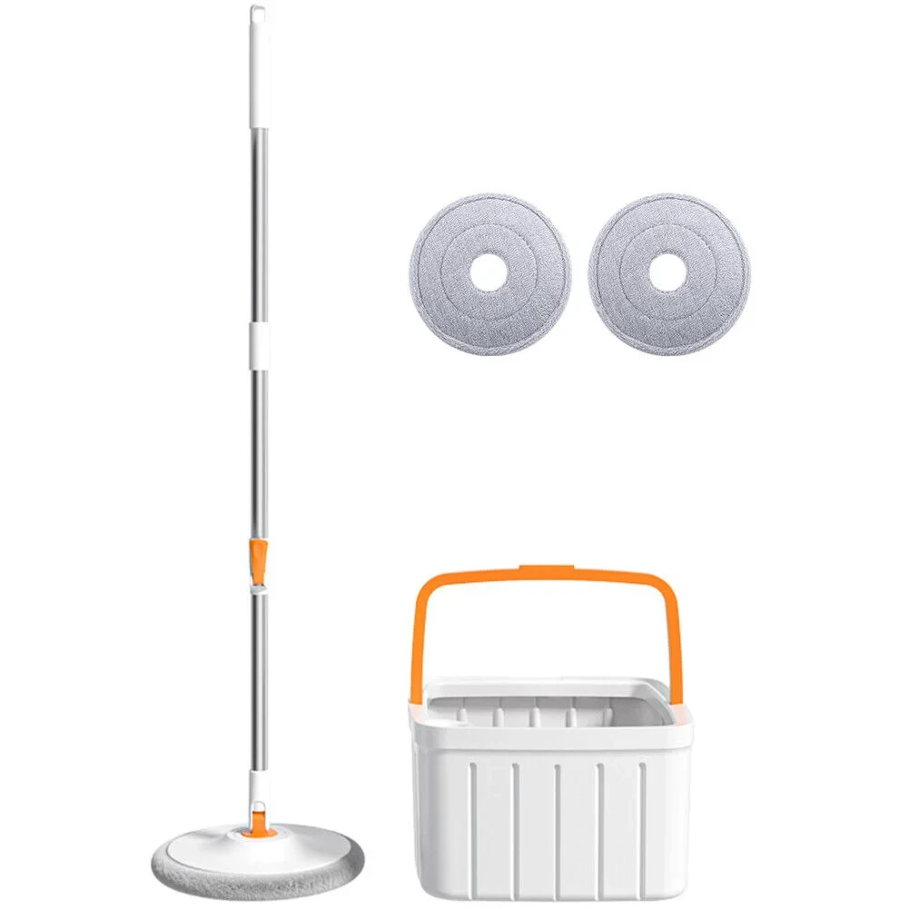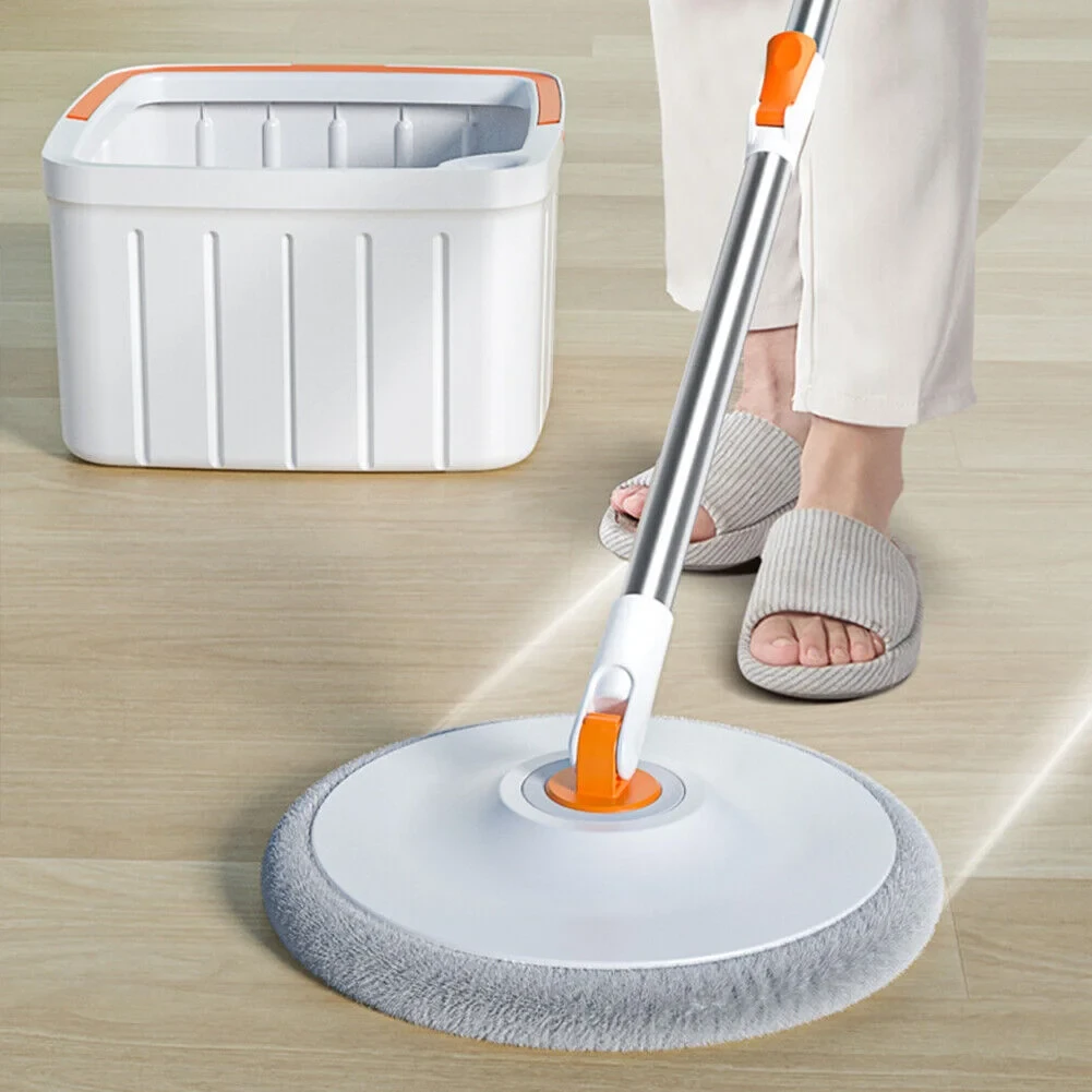 ممسحة أرضيات دوّارة مع دلو ذكي بسعة 2.5 لتر يعتمد على تقنية فصل الماء النظيف عن الماء المتسخ، تصميم دائري للوصول السهل للزوايا، ومقبض قابل للتعديل، مناسبة لجميع أنواع الأرضيات.